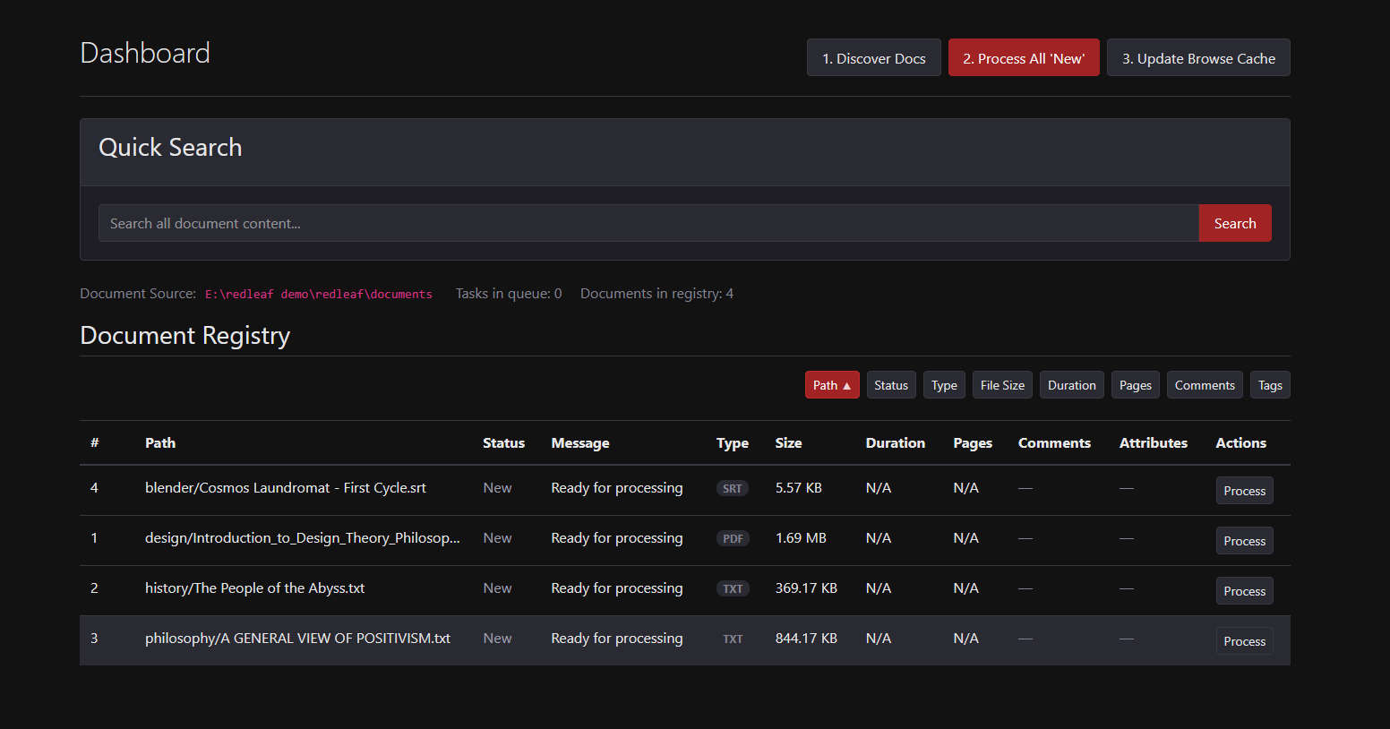For anyone new to the project, Redleaf is a local-first knowledge engine. The goal is to take a folder of documents (PDFs, transcripts, HTML, etc.) and turn it into a private, interconnected knowledge graph that you actually own and control.